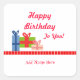 Festive square Sticker with birthday gifts on the left is ideal for any birthday. It is available in various shapes and can be stuck anywhere or can be used as labels on the envelopes of Birthday wishing cards. Customise by adding the recipient's name.