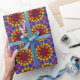 Celebrate the holidays with this vibrant stained glass-inspired pattern, featuring a radiant Christmas tree topped with a glowing star. The design is surrounded by dynamic red, blue, and purple mosaic pieces, creating a lively and festive atmosphere. This intricate 2D pattern captures the spirit of the season with its colourful, glowing details, making it a perfect choice for holiday decor, gifts, or art prints.