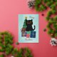 Festive Merry Christmas Cute Black Cat Designed by Sofia MyArt