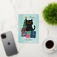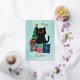 Festive Stars Blue Gold Christmas Black Cat Coffee Foil Holiday Card