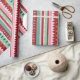 Brighten up your holiday gifts with this fun and festive striped wrapping paper. Joyful geometric Christmas pattern with a colourful mix of decorated stripes, jingle bells, and Christmas trees. Original artwork by Marketa Stengl.