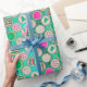 Festive Sugar Cookies on Bright Teal Wrapping Paper