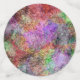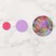 This table confetti has large circles with festive swirls of colors in purple, deep pink, yellow, and green with gray scribbles. The smaller circles are purple and deep vibrant pink.