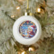 Festive Teddy Bear and Winter Landscape Scene Ceramic Ball Christmas Ornament