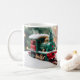 Celebrate the holiday season with this delightful mug featuring a charming toy train design. The green train with red wheels and snow-topped details is set against a backdrop of a beautifully decorated Christmas tree and twinkling lights. Perfect for enjoying your favourite hot beverage, this mug brings the magic and joy of Christmas to your daily routine.