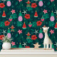 Festive Tropical Summer Christmas Decorations Wallpaper features watermelon, starfish, gingerbread people, pineapples, palm leaves, hibiscus and frangipani flowers on a green background. Perfect for festive Christmas holiday home, office and party decor. Created by Evco Studio www.zazzle.com/store/evcostudio
