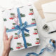 Christmas wrapping paper with cute toy truck and camper in red and green on white for holiday gift wrap. Original photography copyright Ann Powell all rights reserved.