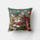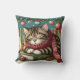 Festive Tuxedo cat sleep over books Cushion