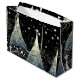 Festive Twilight Christmas trees with intertwining whimsical swirls and twinkling distant stars. Dark background with emerald, green highlights. Showcases vibrant Christmas trees reaching towards the night sky. The colours are swirled around the tree creating a sense of movement. There are stars scattered throughout the sky against a dark backdrop giving Festive Twilight Christmas Trees an ethereal quality.