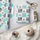 Festive Turquoise and White Typography Christmas Tree Family Photo Wrapping Paper. Turquoise and white background with snowflakes and a simple Christmas tree. White Merry, Happy, Jolly typography. Personalise the design with your photo - insert it into the template and make your own personal wrapping paper.