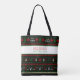 Theme Parties' ugly Christmas sweater tote bag features your name in red sweater font and a short customisable phrase in green sweater font. The design is accented with festive holiday sweater icons, including Christmas trees, reindeer, red hearts, poinsettias, and more. Our tote makes a great hostess gift this holiday season! #UglySweater #GiftIdeas #Christmas