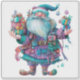 A joyful Santa, adorned in vibrant violet hues, holds colourful gifts in both hands, radiating holiday cheer.