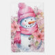 Festive watercolor Christmas pink snowman Tea Towel