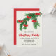 Festive Watercolor Greenery Red Bow Christmas Party Invitation.
