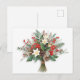 This beautiful flat holiday card features a lush watercolor botanical bouquet that perfectly captures the essence of winter. The arrangement is rich with vibrant holly berries, white winter flowers, deep green pine needles, and natural pinecones, all tied together with rustic twine. This intricate and detailed illustration offers an elegant and sophisticated way to send Christmas greetings. It's ideal for those who love traditional colors and detailed nature-inspired artwork.