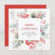 Festive Watercolor Holly Berry Christmas Greenery Holiday Card