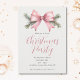 Festive Watercolor Pink Bow Christmas Party Invitation