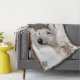 Wrap up in festive style with this beautiful Christmas throw blanket. It features an artistic white deer with a crown of red berries and pine branches on a vintage-inspired background.