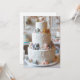 FESTIVE WHITE LAYER CAKE DECORATED WITH TOYS ON THE FRONT OF THE CARD. COMPLETELY EDITABLE COPY ON THE BACK.