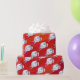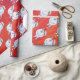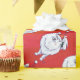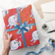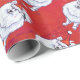 Festive White PomPom Dog Pattern on Red Wrapping Paper