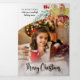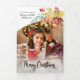 Colourful and festive sprays of Autumn leaves and winter greenery & berries with custom calligraphy Merry Christmas greeting and curved photo template with editable text fields.