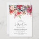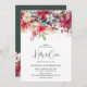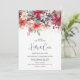 Elegant wedding invitation featuring winter florals - poinsettias, in rich shades of red, burgundy, creams and ivory, festive berries, lush greenery and accents of faux gold glitter dusting. The wedding template is combined with a combination of calligraphy script handwriting and serif fonts.