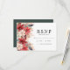 Elegant wedding RSVP Cards featuring winter florals - poinsettias, in rich shades of red, burgundy, creams and ivory, festive berries and lush greenery.