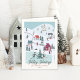 This cute Christmas holiday card features a Christmas town/village with people, houses, a church, trees, a car with a christmas tree on top, and a skating rink. Personalise it for your needs. You can find matching products at my store.