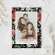 Festive Winter Floral Pattern Black Photo Holiday Card