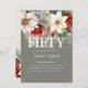 This gorgeous festive floral 50th birthday invitation is perfect if you having a birthday celebration during the winter months. Design features a chic sage green background decorated with gorgeous tradiational red and ivory winter florals and other christmas botanical foliage, faux gold confetti and an elegant birthday party template that is easy to customise with your own event details.