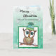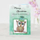 A pretty Christmas or holiday card with a cute watercolor owl in a whimsical winter hat with a blue snowflakes background. Personalise the card by adding your names and editing the greeting if you want, in the personalise area.