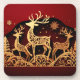 ‘Festive Winter Reindeer – Ornate Forest’ captures the grace and grandeur of the season in rich burgundy and gold. Three intricately patterned reindeer stand poised beneath swirling foliage and snowflakes, their antlers echoing the curves of the landscape. Stylised trees and a dark silhouette of hills add depth and drama to this festive composition.