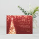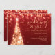 Elegant & Festive Xmas Tree Gold Red Wedding Details/Information Card template, featuring party address and instructions, glitter lights Christmas Tree and modern typography script.