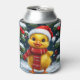 Festive Yellow Duckling in Santa Hat Can Cooler