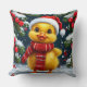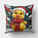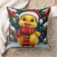 A joyful yellow duckling wearing a Santa hat and red scarf amidst festive Christmas decorations and vibrant falling snow, capturing the cheerful and magical spirit of the winter holidays.