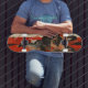"Fetch," a skateboard that melds the charm of a French Bulldog with the edgy vibrancy of digital artistry. At its heart is a captivating, lifelike portrait of the beloved pooch, its gaze imbued with a personality that seems almost tangible. Surrounding this central figure is a dynamic array of abstract digital elements—pixels disassembled and reformed into a tapestry of reds, blacks, and whites, echoing the raw energy of urban street art. Crafted with AI assistance, the design on "Fetch" blurs the lines between technology and organic beauty, creating a rolling canvas that's as much a tool for self-expression as it is a testament to the fusion of art and innovation.