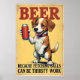 This playful artwork features a cheerful dog holding a can of beer with the humourous phrase “Because Fetching Balls Can Be Thirsty Work.” The vintage-inspired design and bright colours make this print a fun addition to any home bar, man cave, or dog lover’s space. Perfect for anyone who enjoys beer and has a sense of humour, this quirky poster brings lighthearted fun to any room. A great gift for dog owners, beer enthusiasts, or anyone who appreciates humourous decor with a canine twist!