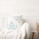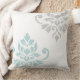 Feuille Damask Art I Duck Egg Blue & Grey on White Cushion