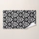 Leafy damask in a vintage style surface pattern design in white detail on a black background.