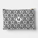 Decorative damask in a vintage influenced pattern, in black detail on a background colour of your choice, with letter centre to personalise on both sides.