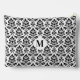 Decorative damask in a vintage influenced pattern, in black detail on a background colour of your choice, with letter centre to personalise on both sides.