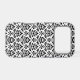 Decorative damask surface pattern design in black detail on a white background.