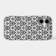 Decorative damask surface pattern design in black detail on a white background.