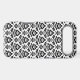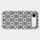 Decorative damask surface pattern design in black detail on a white background.