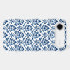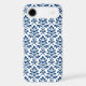 Decorative damask surface pattern design in dark blue detail on a white background.