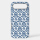 Decorative damask surface pattern design in dark blue detail on a white background.