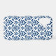 Decorative damask surface pattern design in dark blue detail on a white background.