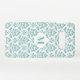 Decorative damask in a vintage influenced pattern, in teal colour detail on a background colour of your choice, with letter centre to personalise.