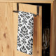 Feuille Damask (v) Pattern Black on White Tea Towel