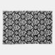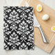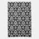 Feuille Damask (v) Pattern White on Black Tea Towel